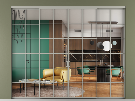 Перегородки FORMATO сочетаются с алюминиевыми дверьми FORMATO, стеновыми панелями Волховец и коллекциями межкомнатных дверей PLANUM PRO, VELVET.